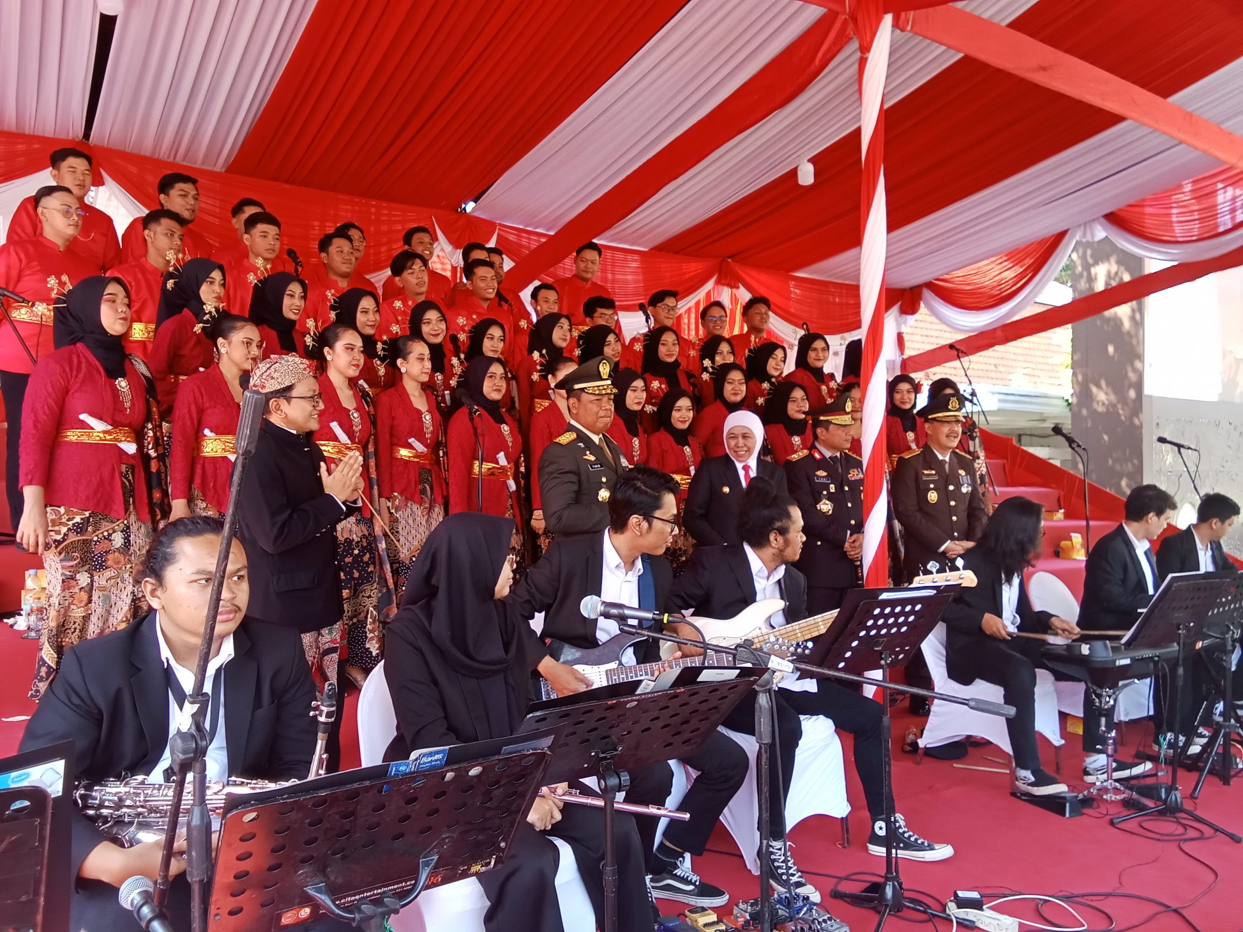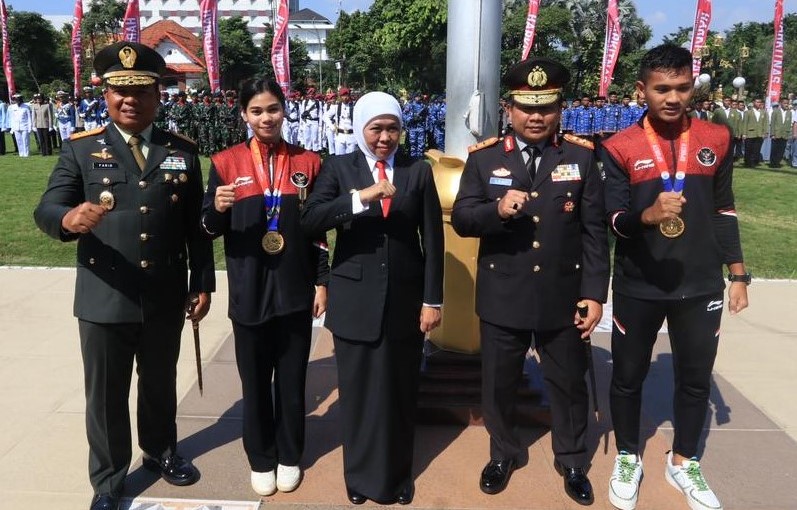 “Di masa ini, di saat kemerdekaan telah kita raih, barisan perjuangan kita harus tetap rapat, erat, dan terus maju bergerak, mengobarkan api ‘Semangat Untuk Bangkit !’ demi mewujudkan Indonesia Emas 2045,” pungkas Khofifah Indar Parawansa.