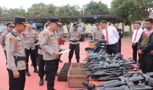 Polres Kutai Timur melaksanakan pemeriksaan rutin senpi milik personel pada di Mako