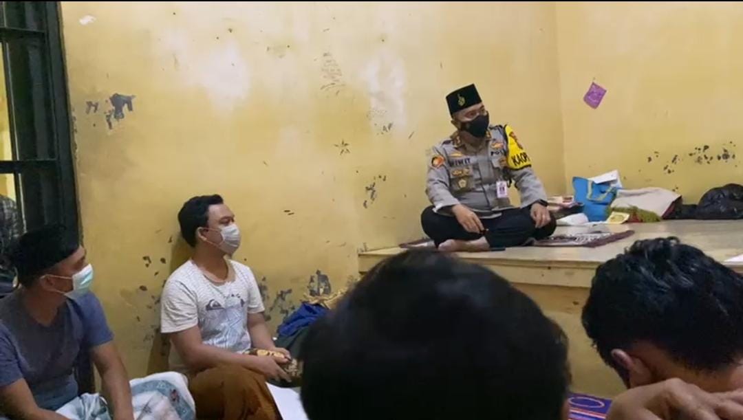 Dalam pantauan mabes media Kapolres Wiwit juga mengajarkan mengaji kepada para tahanan yang diterapkan saat sholat lima waktu